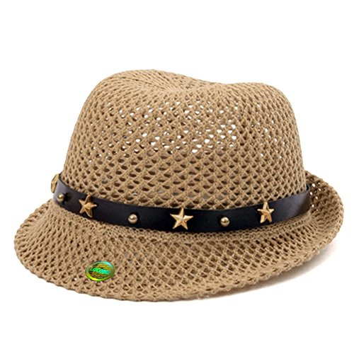 (LOCOMO Baby Fashion)/Accessories/Hats/DIRECT FROM USA/LOCOMO Age 2-4 Boy Girl Cute Star Strap Straw Beach Sun Fedora FBH035BEI