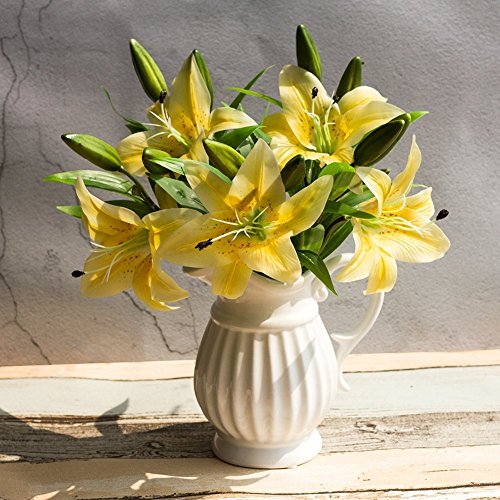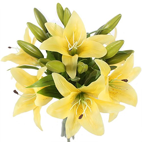Idealgo 5 Pcs Artificial Tiger Lily Latex Real Touch Flowers Fake Flower for Home and Wedding Decoration Artificial Flowers Home Hotel Wedding Party Garden Decorative Arrangement Flowers (Yellow)