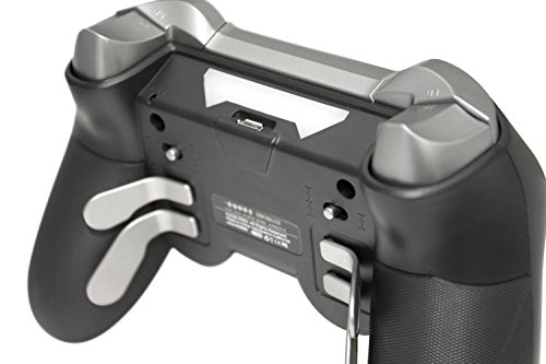 -. Feature : Customizable D-Pad, Joysticks, Rear Paddles, Joystick gripsTrigger locks to pull halfway or full range rapid fire. / Interchangeable thumb sticks and grips2 pairs of colored joystick grips includedPS4 Elite Controller are compatible with Xbox Elite Controller accessoriesFor use with all PS4 systems / Interchangeable Rear Control PaddlesInterchangeable D-Pad and Directional DiscSilicon back grip material / Rechargeable charging with micro USB cable (included)Included USB dongle connects to your PS4 console and pairs controller automatically / Customizable trigger locks for LT and RT buttons. When locked, button only pushes halfway for faster shooting, saving valuable time with each trigger pull. Easily switch back to full trigger motion.