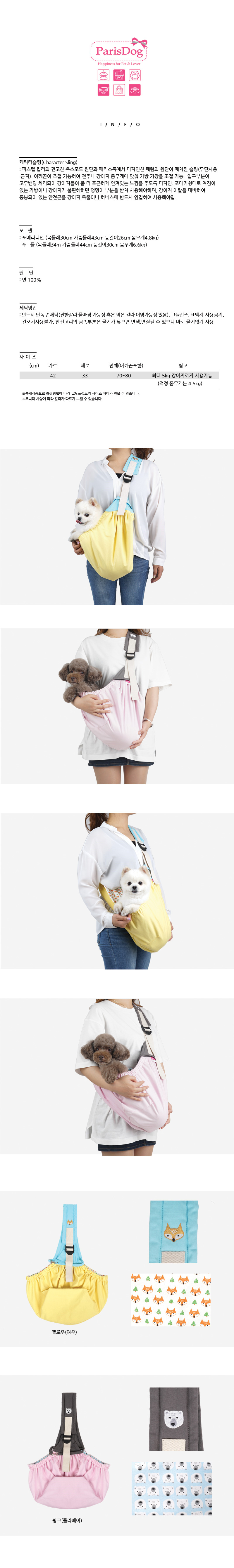 Paris Dog Character Sling Bag - Yellow Fox Supplies Backpack Carrier Moving Summer Slim Bag