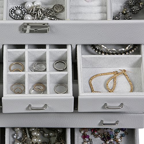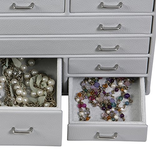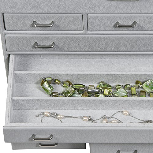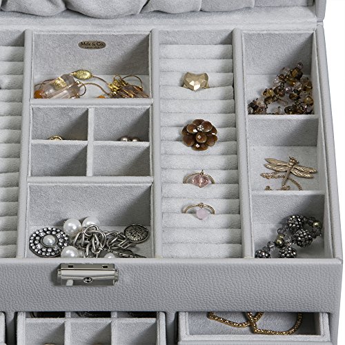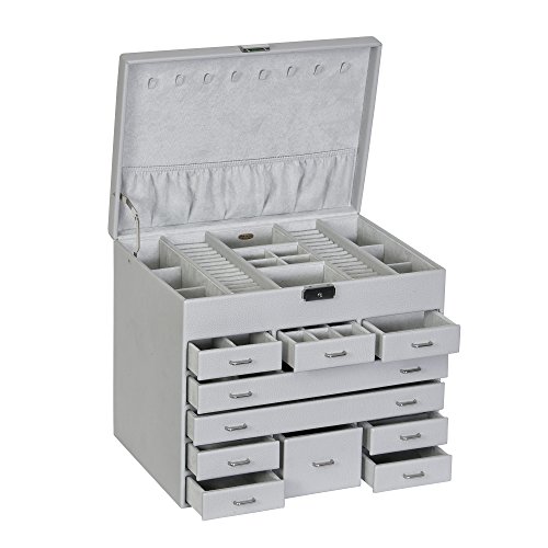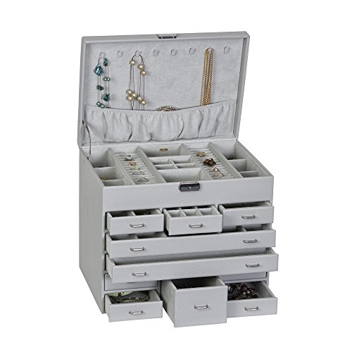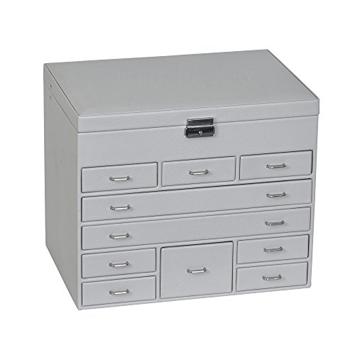 -. Binding : Kitchen -. Brand : Mele & Co. -. Feature : Dimensions: 14L x 10W x 12H in. / Crafted of gray faux leather / 10 drawers, including ring holder / Lined with plush ecru suede / Features top locking compartment -. Label : Mele Jewel Box -. Manufacturer : Mele Jewel Box -. MPN : 00639S17 -. PackageQuantity : 1 -. PartNumber : 00639S17 -. ProductGroup : Home -. ProductTypeName : HOME -. Publisher : Mele Jewel Box -. Studio : Mele Jewel Box -. Title : Somerset Locking Fashion Jewelry Box - 14L x 10W in.