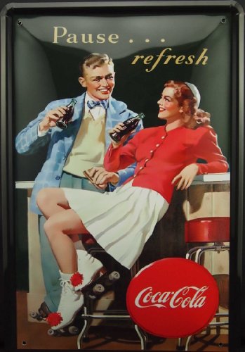 Coca Cola : Pause...refresh, Coke Metal Tin Sign, Art Vintage Style Wall Ornament Coffee Decor, 20 X 30 Cm.