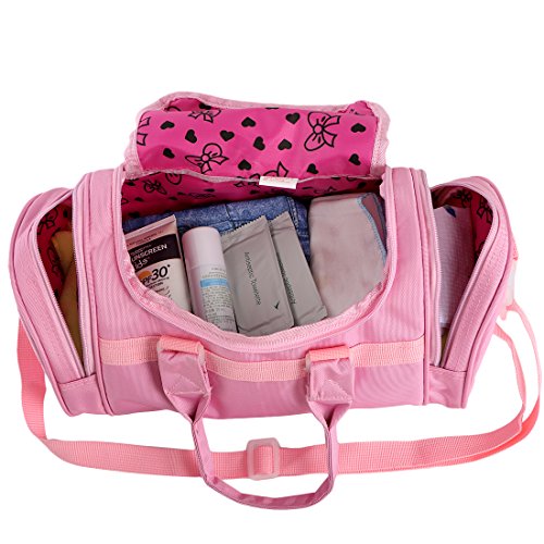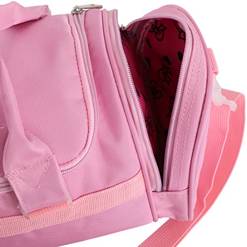 Product Description Make your girl an all out dancing diva with kilofly Girl's Ballerina Ballet Dance Bag. This lovely designed bag comes has a lot of storage space inside its main compartment. The main compartment has a wide 3-side zipper closure for a convenient packing and unpacking experience. It also has 2 side compartments one on each side, making an easy way of organizing and separating towels, socks, brushes and other items. This is definitely the bag to hold your ballerina's valuable items like wallets, makeup kit, school things, extra clothes or water bottles for trainings and recitals. It's also a great use for their dance practices or girl sleepovers.