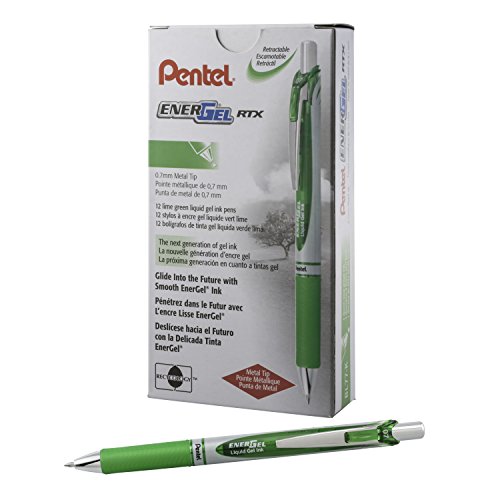 -. Title : Pentel EnerGel RTX Retractable Liquid Gel Pen, (0.7mm) Metal Tip, Medium Line, Lime Green Ink, 12 pack (BL77-K)