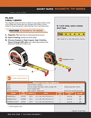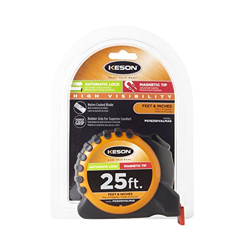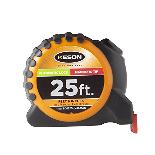 Keson PG1825ALVMAG Short Tape Measure with Auto Lock and Nylon Coated Steel Blade, 25-Feet X 1-Inch