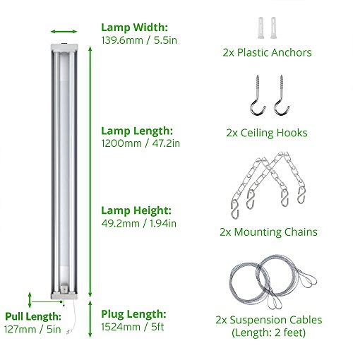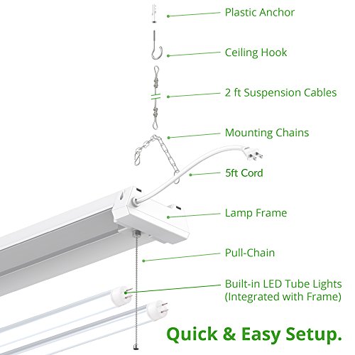 ✔ BENEFITS: Sunco's LED Shop Light is designed using incomparable material and has a lifetime of 50,000 hours. With our INSTANT ON feature, you never have to worry about flickering. The light is MERCURY FREE and contains NO UV, making it safe for the home and environment. All purchases come with an instructional manual for easy, simple and fast installation. Surface & Suspend Mount. Plug-n-Play, 5' plug-in cord, no wiring needed. 18.5" pull cord switch. NO humming sound.