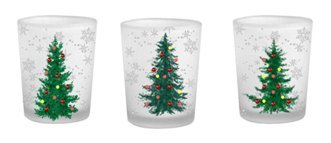 Christmas Tree Candle Holder - Set of 3 - Frosted glass holder with Red and Gold Jewels for Tree Decorations