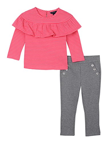 Stripes and ruffles are fabulous in this two piece set from Nautica. A comfortable knit blouse is paired with Ponte pants.