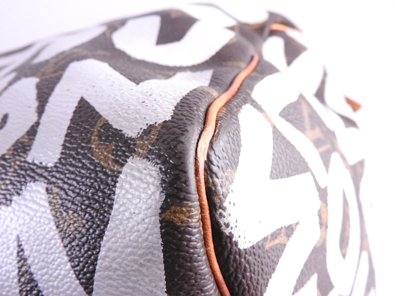 Monogram Graffiti: Used feeling. Some stains and peelings. Leather: Used feeling. Some stains, wrinkles and tanning. |