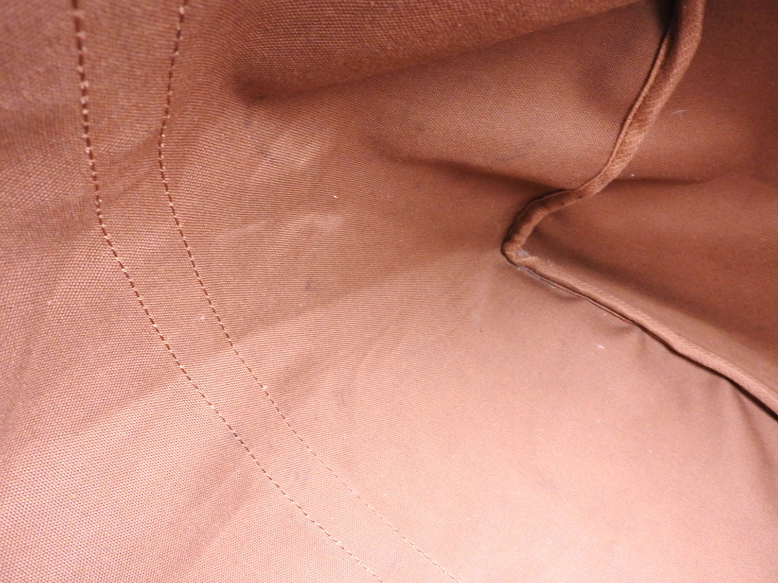 | Corners | Used feeling. Some stains, scuffs and tanning in the piping around the bag. |
