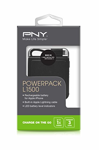 Portable Power for Your Mobile Device Ideal Solution for charging the latest Apple iPhone 5, 5s and 5c. Live Mobile: Stay Charged. The L1500 is the ultimate all-in-one a€ rechargeable battery for your Apple iPhone 5, 5s & 5c. PNYs Power Pack L1500 offers a small and compact design with a built-in Apple Lightning cable, as well as an integrated flip-out USB connector for charging the Power Pack. Know when items time to recharge with the simple LED indicator, which uses three lights to display the PowerPack battery level status. The portable and thin flat design is small enough to keep with you at all times, so you can stay charged and stay in touch. Whether in your pocket or your purse, the L1500 is the perfect accessory for your Apple device. Stay connected on the go with PNY! Apple Certified: This product is designed with the highest quality material. It has Apples MFI certification, and provides 1 Amp current to charge iPhone 5s/5c/5. The Power Pack L1500 comes with a