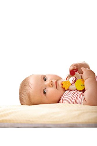 [Product Information]- This darling little clutching toy measures 3.5" in diameter and has dangling feet that make a soft soothing sound when rattled.