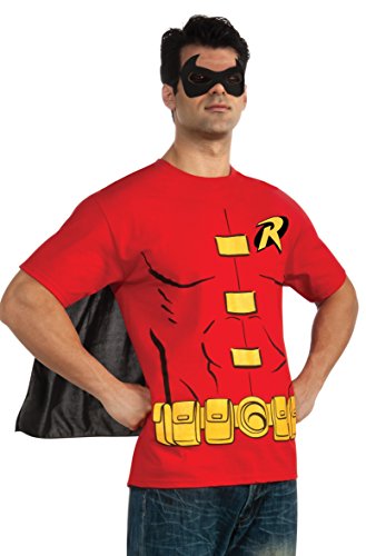 -. Binding : Apparel -. Brand : Rubie's -. ClothingSize : Medium 40-42, Large 42-44 and XL 44-46 chest size -. Color : Multi-Colored -. Department : mens -. Feature : Costume t-shirt is a fun and easy choice all year long; parties, dress-up, hanging out and feeling like a super hero, as well as halloween / Men's style t-shirt with robin print, attached cape and eye mask / Easy care polyester is machine washable / Officially licensed dc comics costume / Rubie's has the licensed costumes and accessories that make dress-up fun for children and adults -. Genre : Superheroes/Villains -. IsAdultProduct : 0 -. Label : Rubies Costumes - Apparel -. Manufacturer : Rubies Costumes - Apparel -. MPN : RU880472LG -. NumberOfItems : 1 -. PackageQuantity : 1 -. PartNumber : RU880472LG -. ProductGroup : Apparel -. ProductTypeName : ADULT_COSTUME -. Publisher : Rubies Costumes - Apparel -. Size : X-Large -. SKU : WC24593 -. Studio : Rubies Costumes - Apparel -. Title : DC Comics Men's Robin T-Shirt With Cape And Mask