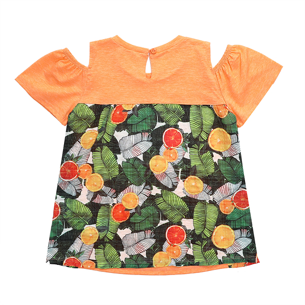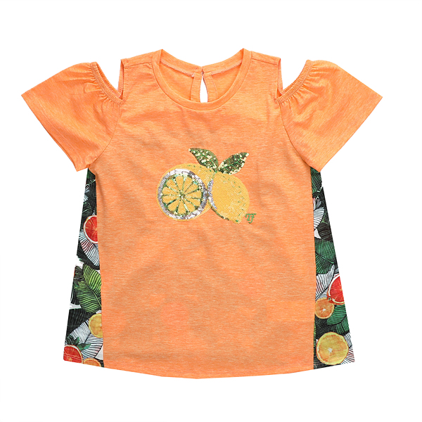 A-라인의 디자인으로 체형에 관계없이 편안하게 입을 수있으며 레몬장식이 화려한 분위기를 돋보이게 하는 티셔츠입니다.