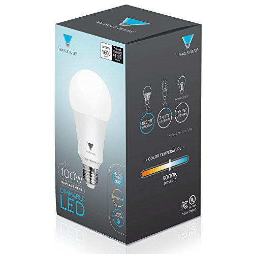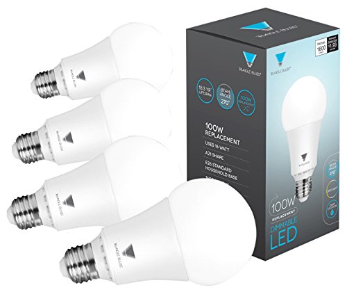 Triangle Bulbs T95143, LED Dimmable 100 Watt Equivalent 5000K Daylight LED Light Bulbs, 1600 Lumens, 4-PACK