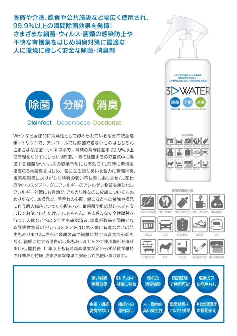 Disinfect (disinfection), Decompose (decomposition), Deodorize (deodorant) of the three efficacies are 3D.