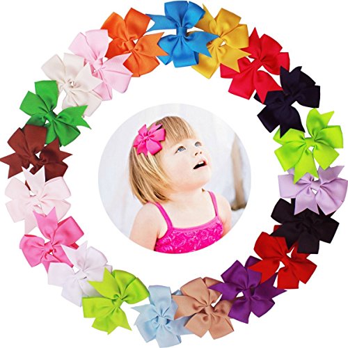 Boutique Hair bow size approx 3.5 inch ;Made from 1 inch grosgrain ribbon; Attached with 4.5cm alligator clips. Set of 20 colors; Handmade and available for almost all occasions when is needed.Best Gift for Baby,Toddlers
