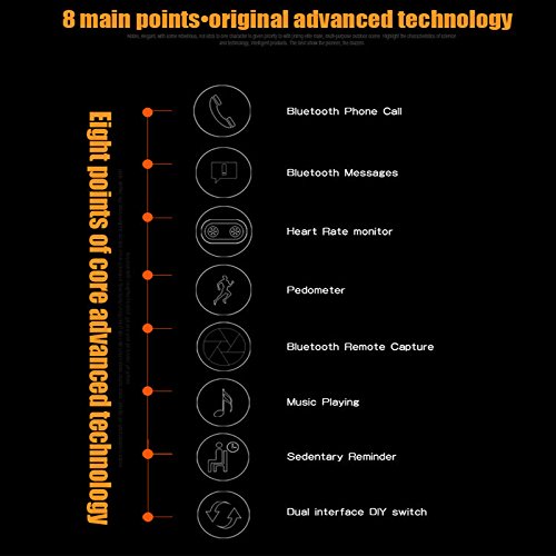 Function:Passometer,Fitness Tracker,Sleep Tracker,Mood Tracker,Message Reminder,Call Reminder,Answer Call,Dial Call,Remote Control