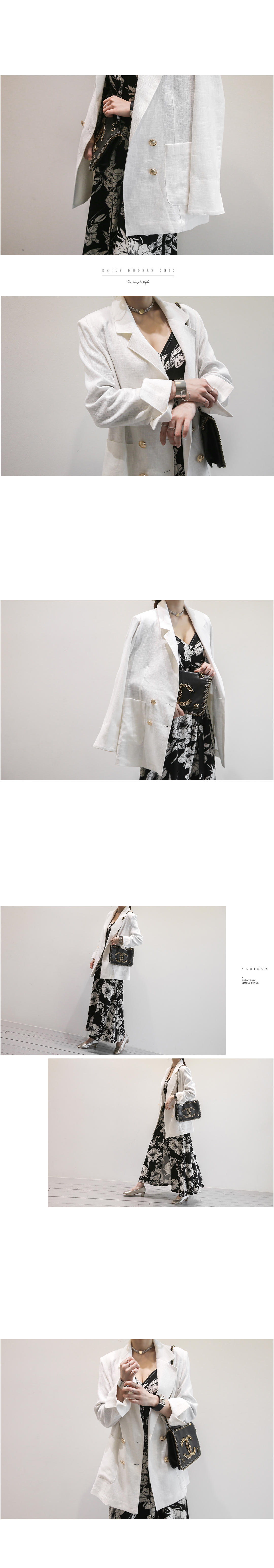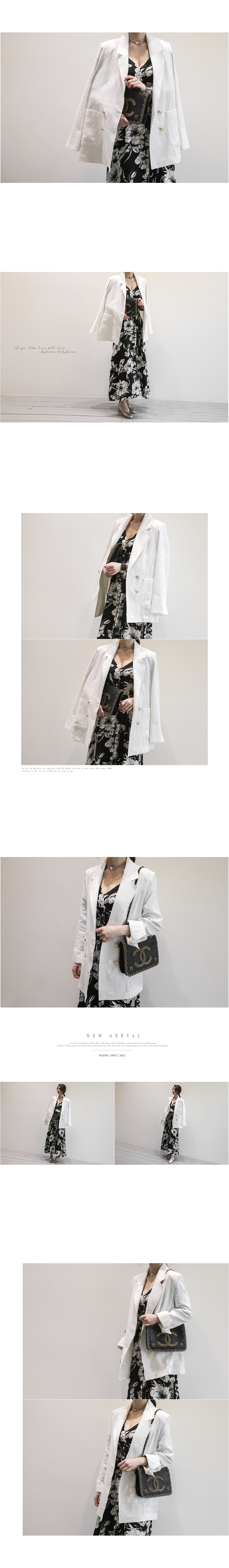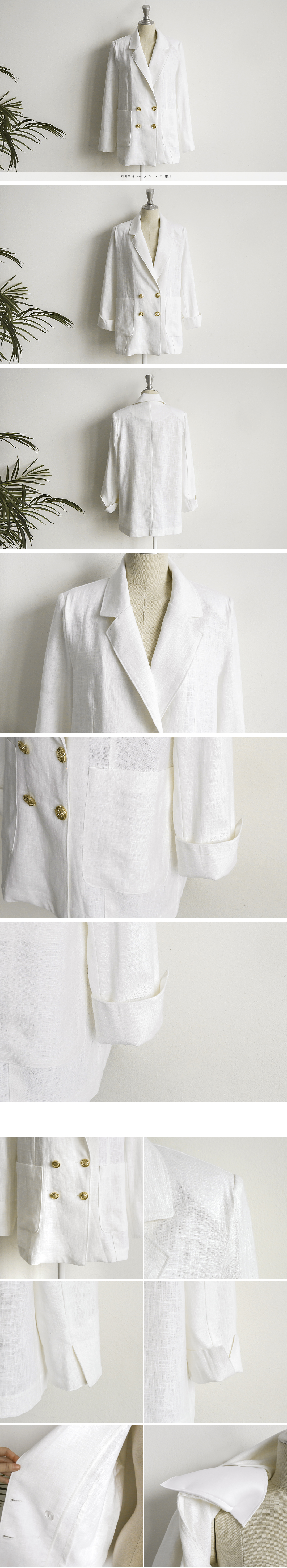 여름까지 시원하게 착용하실 수 있는 린넨자켓 소개해드릴께요.린넨 100%소재로 고급스럽고 멋스러운 텍스쳐를 보여주구요.더블버튼과 테일러드카라로 클래식한 분위기를 연출해줍니다.적당히 넉넉한 품과 어깨패드로 바디라인이 슬림해보이구요~양쪽포켓으로 실용적이며 소매가 약간 긴편이라 롤업해서 착용하시면 좀더 스타일리쉬해요!S/S 시즌에 하나쯤 소장하시면 봄부터 가을까지 두루두루 스타일링이 가능하답니다.