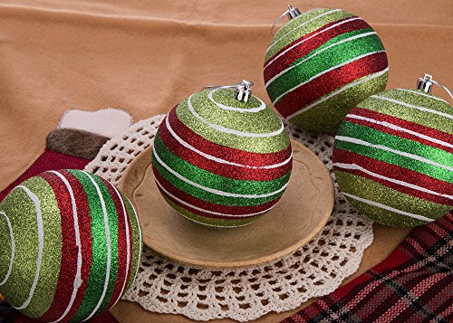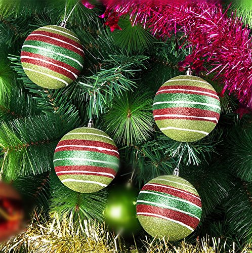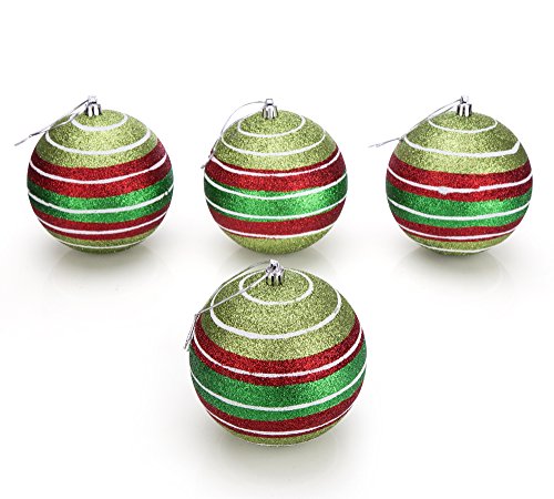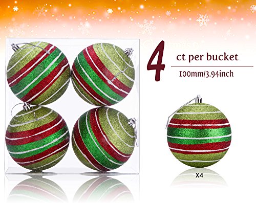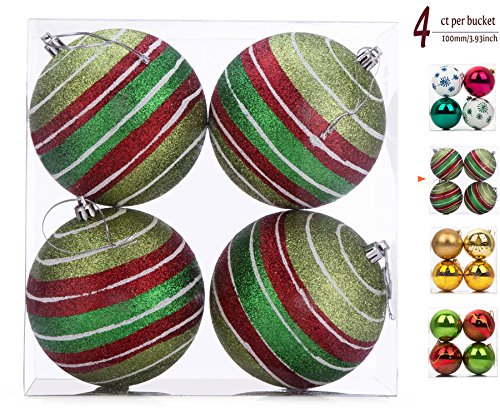 iPEGTOP 4ct 100mm/3.9" Christmas Ball Ornaments, Shatterproof Glitter Swirling Christmas Tree Balls Decorations for Wedding Party Festival Home Decor