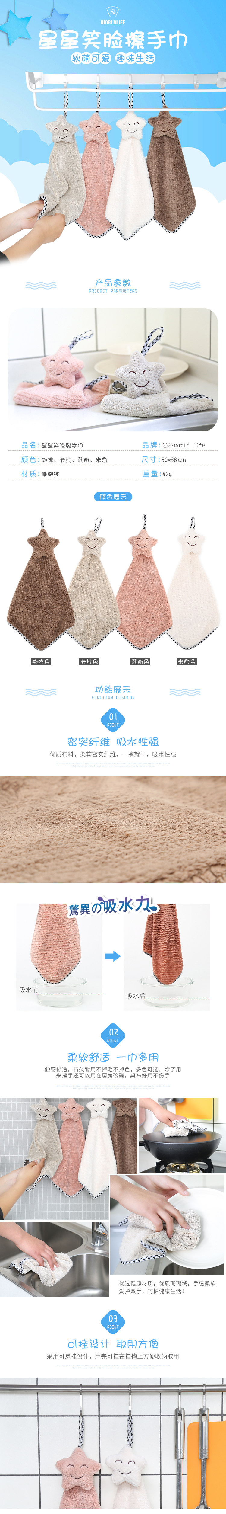 挂式擦手巾加厚可爱星星毛巾清洁布厨房吸水不沾油洗碗小抹布
