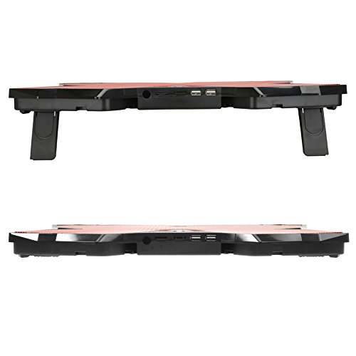 - Feature : Metal mesh surface provides a stable supports for various laptops sizes up to 15.6-inch and 17.3-inch. / Durable material and lightweight design offers excellent portability and helps prevent overheating. / 4 high performance 140 mm fans can spin at 1200 RPM to dissipate heat from gaming laptops. / Ergonomic design with 2 viewing angles available for the most comfort in use / Dual USB ports: Powered by the one USB port through USB cable included, no need for a bulk battery or AC power; the other USB port to connect your devices.