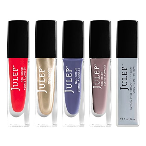 -. Binding : Health and Beauty -. Brand : Julep -. EAN : 0814502025399 -. Feature : Dries ultra fast & allows 30% more oxygen to permeate the nail bed than other nail polish / Julep nail polish is 5-free and vegan-friendly. We steer clear of formaldehyde, formaldehyde resin, toluene, DBP, camphor, and animal ingredients or byproducts. / Extends the life of your manicure or pedicure -. Label : Julep -. Manufacturer : Julep -. Model : ASB-002142 -. MPN : ASB-002142 -. PackageQuantity : 1 -. PartNumber : ASB-002142 -. ProductGroup : Prestige Beauty -. ProductTypeName : LUXURY_BEAUTY -. Publisher : Julep -. ReleaseDate : 2016-07-14 -. Studio : Julep -. Title : Julep 4-Piece Nail Polish Gift Set Plus Top Coat, 0.27 oz. -. UPC : 814502025399