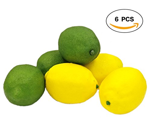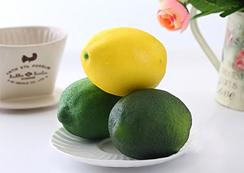 R.FLOWER 6PCS Yellow & Green Lifelike Simulation Artificial Lemon Kitchen Home Party Cabinet Decoration Fake Fruit