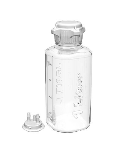 Heavy Duty PETG Vacuum Bottle, 1L, with 53mm (53B) Tangle Free VersaCap, Two 1/4 Inch Hose Barbs and Sealable Vent Port