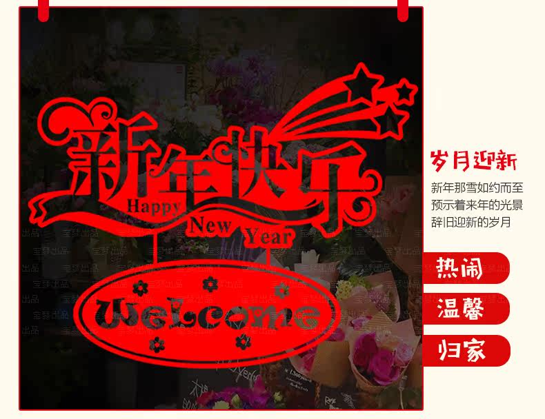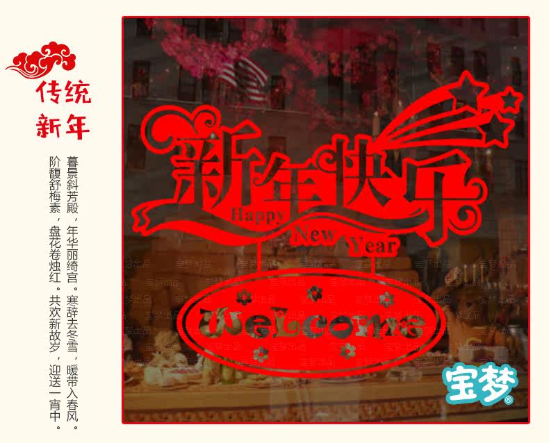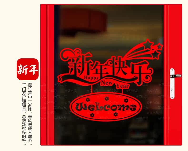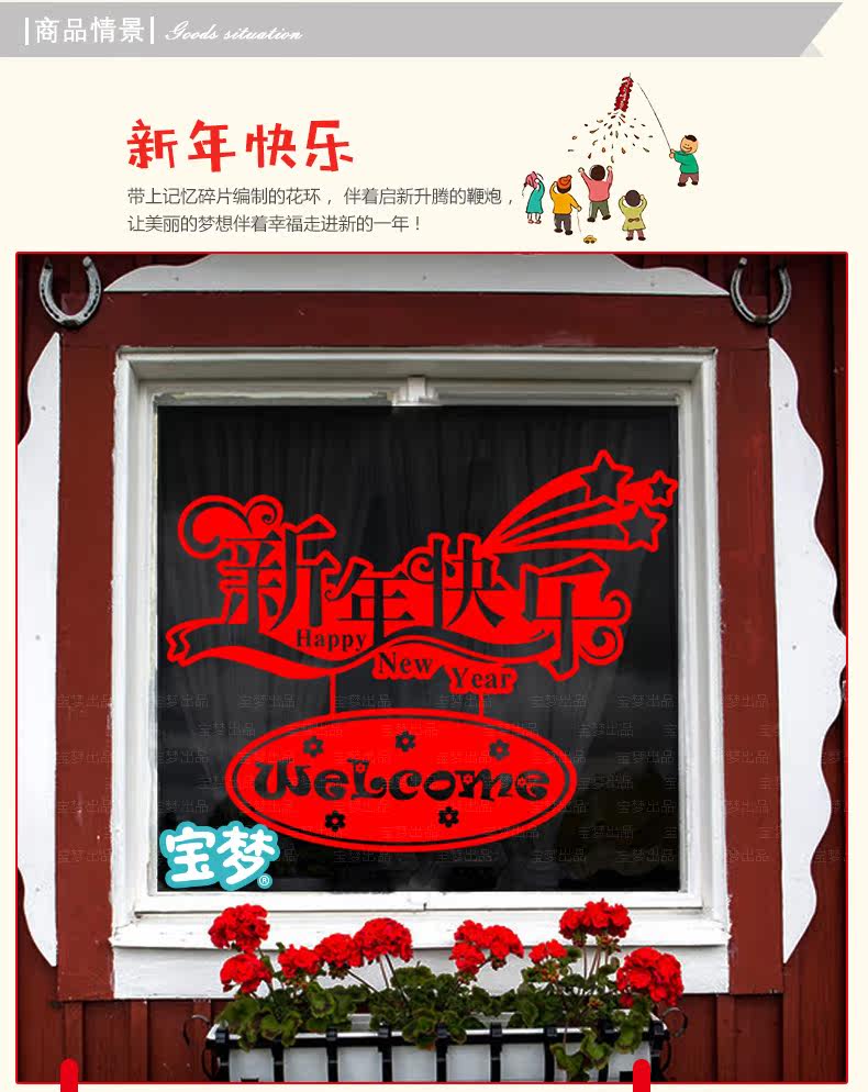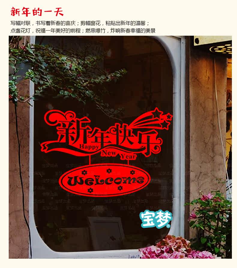 新年春节店铺橱窗玻璃贴门窗贴纸商品卖场过年装饰品自粘贴画