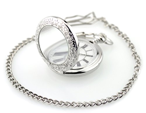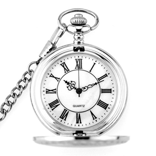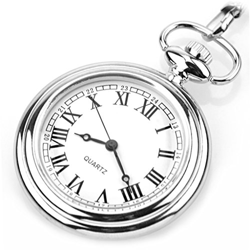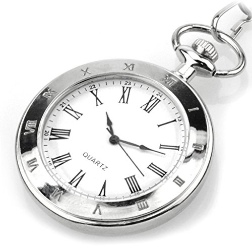 -. Title : WZC Silver Vision Vintage Roman Numerals Quartz Mens Pocket Watch with Chains