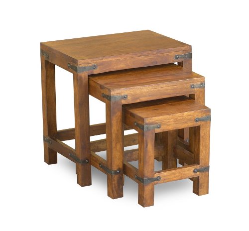 -. Binding : Kitchen -. Brand : Timbergirl -. Color : Brown -. Feature : Set Includes: Set of 3 tables / Materials: Solid see sham wood/wrought iron / Finish: Hand-Finished honey walnut/natural wax / Dimensions: (Large) 17.75 Inch x 17.75 Inch x 11.75 Inch/(medium) 15.5 Inch x 15.5 Inch x 10 Inch/(small) 13.5 Inch x 13.5 Inch x 8 Inch -. Label : Timbergirl -. Manufacturer : Timbergirl -. Model : AA1305 -. MPN : AA1305 -. PackageQuantity : 1 -. PartNumber : AA1305 -. ProductGroup : Furniture -. ProductTypeName : HOME_FURNITURE_AND_DECOR -. Publisher : Timbergirl -. Studio : Timbergirl -. Title : Timbergirl Hand-Crafted Rustic Nest of Tables
