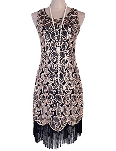 -. Title : Kayamiya Damen 1920er Paillette Paisley Muster Franse Gatsby Kostüm Flapper Kleid