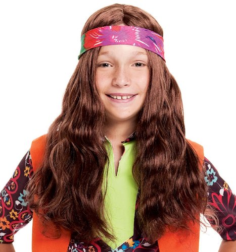 This Child Long Brown Hippie Wig for boys or girls is about 18 inches long and features the tie-dyed bandana. Be sure to get a wig cap to control hair under the wig. It improves the wig fit for better style and enhances wig comfort.