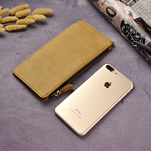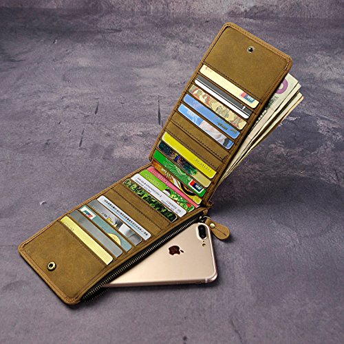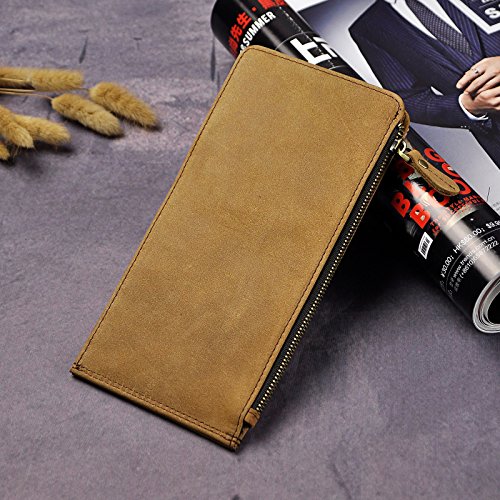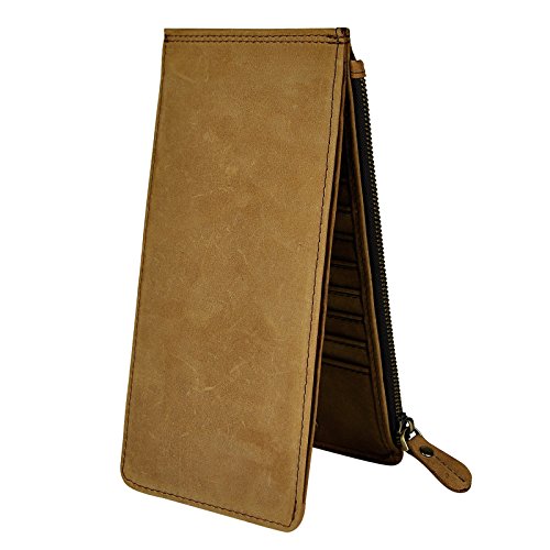 -. Binding : Apparel -. Brand : le'aokuu -. Color : brown -. Department : mens -. EAN : 0712755786275 -. Feature : Product NO: W1057 / Material: Genuine leather / Size: 20 x 1 x 10cm (8 x 0.4 x 4inch), can fit a max 5inch cell phone / Structure: This is genuine leather for men with a lot card case to keep your card organized, it also has few can holder. / Please be noted: This is genuine leather products, it usually come with the leather smell and it'll fade out as time going. -. IsAdultProduct : 0 -. Model : W1057 -. PackageQuantity : 1 -. ProductGroup : Apparel -. ProductTypeName : LAGE -. Size : Medium -. Title : Le'aokuu Mens Genuine Leather Cowhide Large Capacity Credit Card Case Wallet Zipper Cash Money Holder (Light Brown) -. UPC : 712755786275