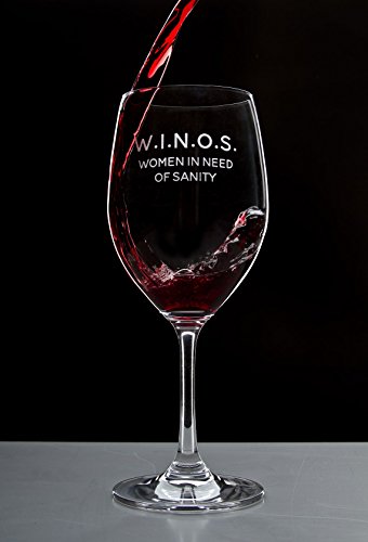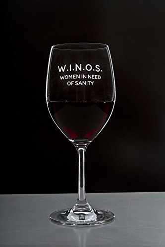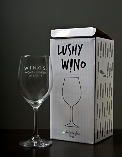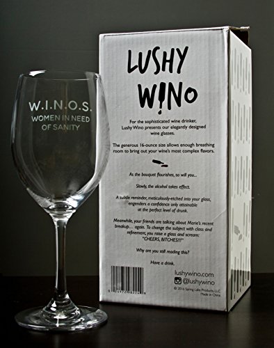 Studio : Lushy Wino Publisher : Lushy Wino Product Description The perfect wine glass for the wine lover in your life! "W.I.N.O.S. Women In Need Of Sanity." A gentle reminder, meticulously etched (not printed) into the glass so that it never wears off, that will add a sense of refinement and humor to every occasion. Its generous 16-ounce size allows wine to breathe and fully develop the rich bouquet of flavors you would expect from fine crystal. Yet, this wine glass makes for a great reasonably priced gift! This isn't a cheap novelty gift. This is fine, dishwasher-safe glassware that is perfect for use as your daily wine glass. All Lushy Wino glasses are individually boxed and protected. The carefully etched text will never wear off with heavy washing. This wine glass makes for a humorous and useful gift that will keep your girlfriends, moms, sisters, bachelorettes, bridesmaids, colleagues, enemies, former lovers and even Janet from Accounting thinking of you for years to come. Wine not buy one now? Cheers! 0