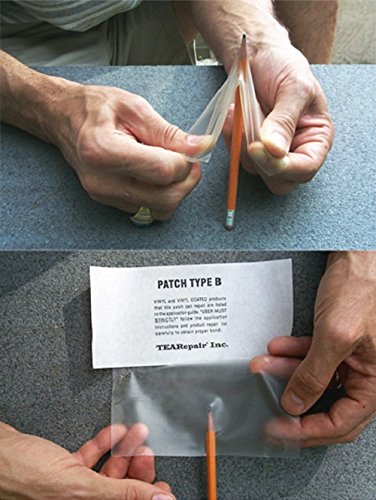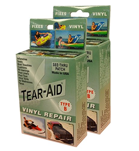 Studio : Tear-Aid Repair Publisher : Tear-Aid Repair Binding : Sports Product Description Tear-Aid repairs holes and tears instantly! Tear-Aid has a unique composition that stretches and recovers absorbing the force that causes ordinary products to lift. Holds air and water under pressure even when stretched. The UV resistant inhibits yellowing and it conforms to irregular surfaces. Cuts easily to any size with scissors. Won't turn gummy. Available in either Type A (fabric) or Type B (vinyl) depending on what surfaces you need them for. Each kit sold separately.Kit contains: (1) 3 in. x 12 in. TEAR-AID patch(1) 7/8 in. square patch(1) 1 3/8 in. square patch(1) 12 in. Reinforcement filament for repairing tears at edges(2) alcohol prep pads(1) illustrated instructionsProduct repair list 0
