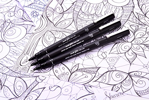 -. Title : uni-ball Pin Drawing Pen - Black - Assorted Size, Pack of 3