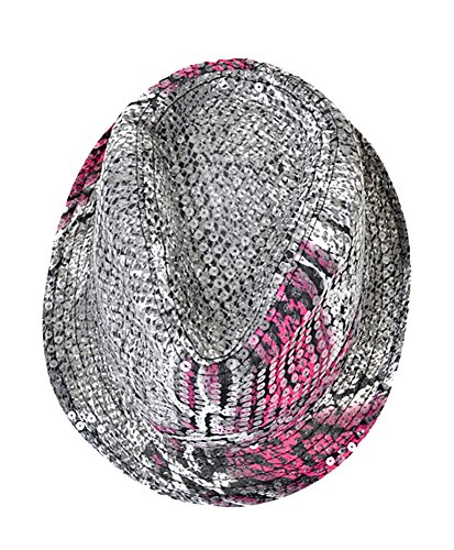 -. Title : Pink Snake Skin Sequin Fedora Hat