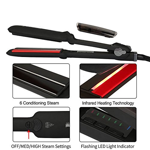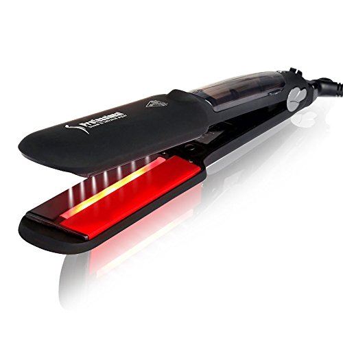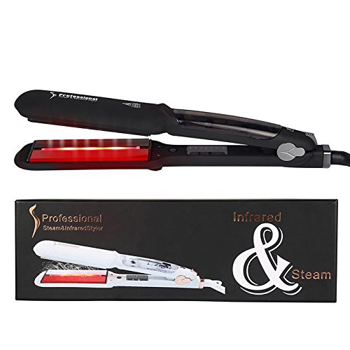 Infrared Steam Salon Hair Straightener - 2 Inches Wide Plate Steam Styler Ceramic Tourmaline Flat Iron Vapor Heater Hair Straightening Iron with Anion Care...