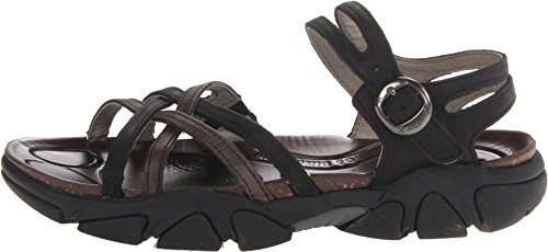 Natural latex and cork footbed cushions and absorbs shock with every step. Adjustable instep strap for easy on and off. Non-marking rubber outsole.