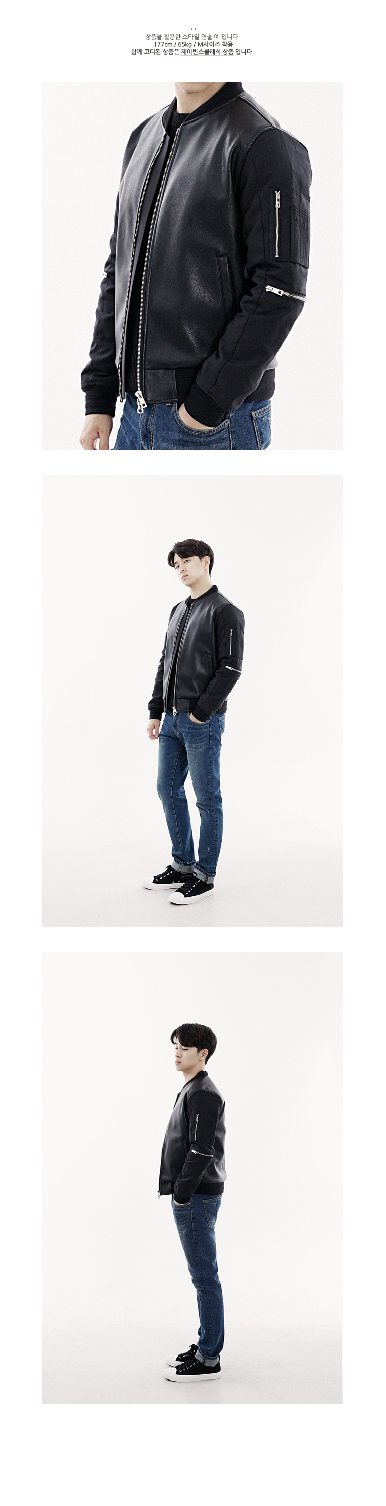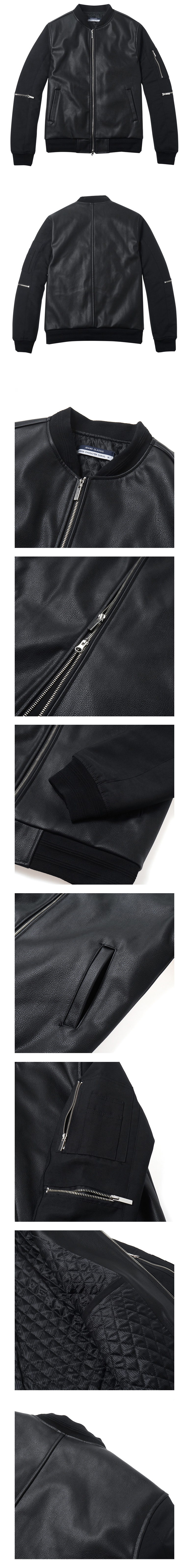 퀄리티가 매우 좋은 두께감 있는 인조가죽으로 소매부분을 우븐배색해