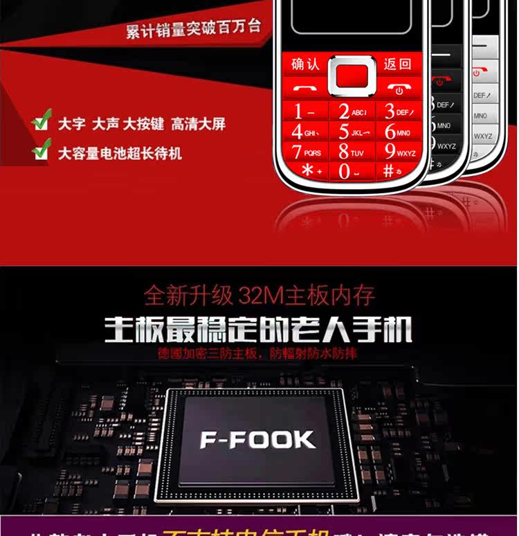 F-FOOK F999 mobile phones for the elderly characters straight out loud senile classic top grade phone