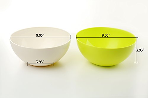 - HIGH QUALITY MATERIAL: Our bowls are made of high quality food plastic. These mixing bowls are microwave-safe. You can use silicone bowl lids to cover them, but in most cases you don’t need to do that because the bowl is designed to cook fast. Our clear plastic bowls are dishwasher safe and much better than glass bowls with lids because of their smaller weight. The bowls are unbreakable. They look like fruits because of their bright green and white colors. The material is safe for children.