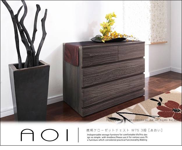 焼桐スクエアクローゼットチェスト AOI〔あおい〕幅75cm 3段 桐タンス チェスト 国産