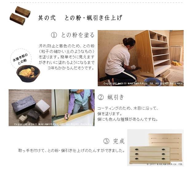 材質:天然木(桐)、焼桐仕上げ、との粉ロウ引き仕上げ