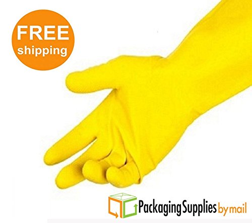 Studio : PackagingSuppliesByMail Publisher : PackagingSuppliesByMail Binding : Misc. Product Description Flock lined rubber gloves are perfect for tough jobs including cleaning, dish washing, scrubbing and scouring. This glove is thicker and stronger than most gloves, offering excellent protection. Convenience with silky smooth lining for easy on easy off donning. Natural latex offers the best fit, sensitivity and dexterity.Polymer coated chlorinated glove surface help reduce skin contact with latex film or event skin allergies to protein or powder. Good resistance to detergents and diluted chemicals. 0