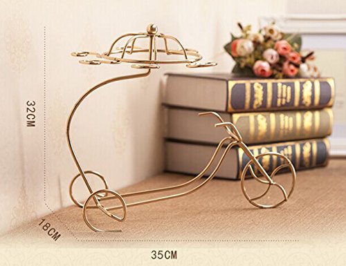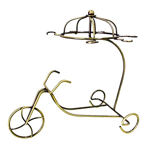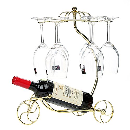 LOHOME Wine Rack and Cup Holder, European Style Tricycle Vintage Red Wine Bottle Glasses Holder Hanging Upside Down Cup Goblets Display Rack Free Standing Rack Table Top Modern Art (Golden)