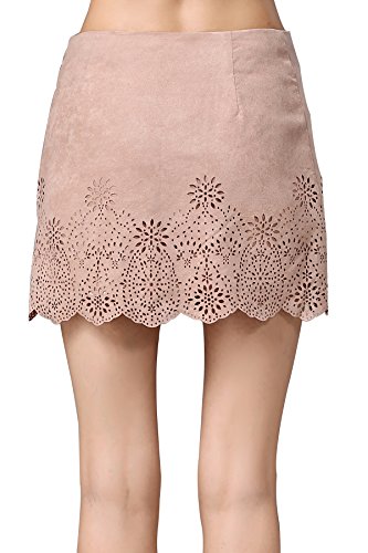 -. Binding : Apparel -. Brand : Little Smily -. Department : womens -. Feature : Made of soft and light faux suede fabric, suitable for this season / Laser-cut flower designs along the hem / Simple a line shape, Regular fit / Sider invisible zipper / Fully lined -. ProductGroup : Apparel -. ProductTypeName : SKIRT -. Title : Little Smily Women's A-line Flower Laser-Cut Faux Suede Mini Skirt