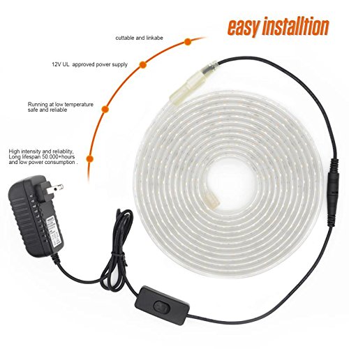 - Easy to Install: Powered by 12V/3A DC power adapter, very safe to use. Connect the rope light to the convert cable, plug in the DC cord and twisted to keep it tight. With the power supply plugged in, you will be able to control the light with in line push button. The item do not have adhesive tape on the back, it comes with screw and buckle kit for installation.